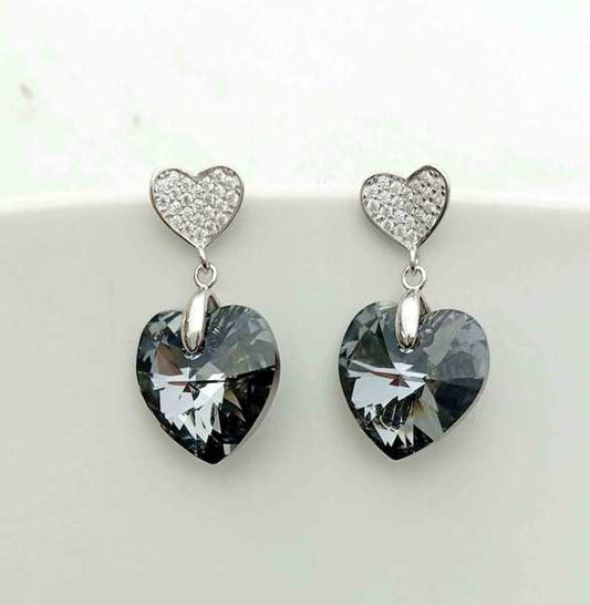 Aro Cancho Plata925 Circon Y Cristal Swarovski Elements Corazon Negro 14mm