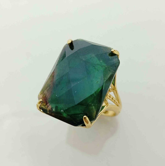Anillo Bañado en Oro Piedra Rectanculo Colores