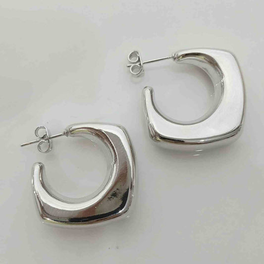 Aro Bañado en Oro Argolla Cubo Curadrado Liso 25x20mm