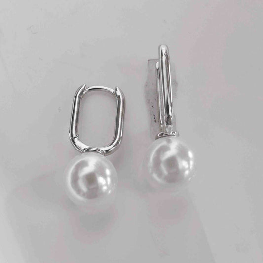 Aro Argolla Cuadrada Bañado en Oro 18k y Bañado en Plata Liso Colgante Perla Imitación