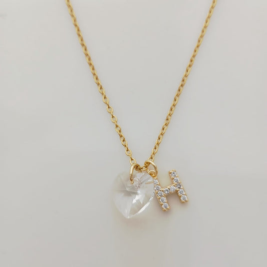 Collar Acero Quirurgico Dorado Colgante Letra Circones y Cristal Corazon 45cm