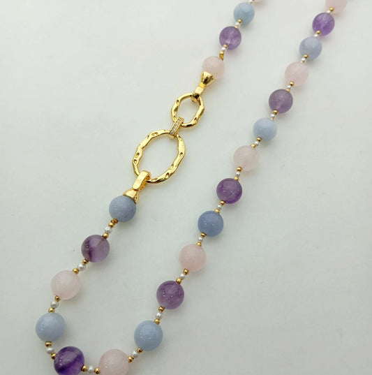 Collar Bañado En Oro Colgante Piedras Natural