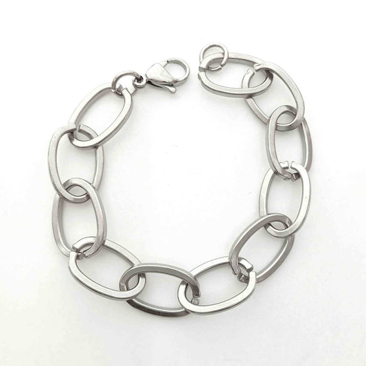 Pulsera Acero Inoxitable Bañado en Plata Crueso Argollas Lisos