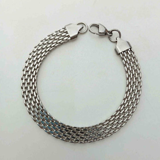 Pulsera Acero Inoxitable Bañado en Plata Entrelazado Grueso